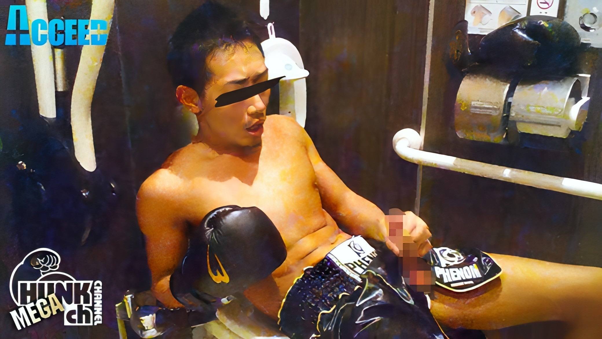 【セルフ顔射アナニ―】本編でドエロな姿を存分に曝したアキラの初撮り映像!!ケツマンを責められるのが大好きなドMなアキラ。指3本を簡単に飲み込み、更に6本の指をも咥えこむアキラのケツマン。極太ディルドを挿入し、自ら気持ち良いところに当てようと腰を動かす。「早くザーメン出したいッス…」オナ禁して我慢の限界だったアキラ、あまりの気持ち良さにトコロテン!!「顔射したいッス…」ディルドを入れたままチングリ返しで最後はセルフ顔射!!「ザーメン美味いッス…」【公衆トイレで自撮りオナニー】とあるショッピングセンター内の公衆トイレにカメラを設置し、ボクシングパンツとグローブを装着し、オナニーを始めるアキラ。外から聞こえてくる温風乾燥機や、水を流す音が何ともリアル。パンツの上からグローブでチンポを擦り、「気持ちイイ!!」と外の人に聞こえない声で喘ぐ。我慢出来なくなったアキラは片方のグローブを外し、ギンギンに勃起したチンポをパンツから出し、直接しごきだす。グローブで乳首を擦り、舌を出して感じまくりのアキラ。最後は黒のボクシングパンツに濃厚な白濁液を大量に撒き散らす!!