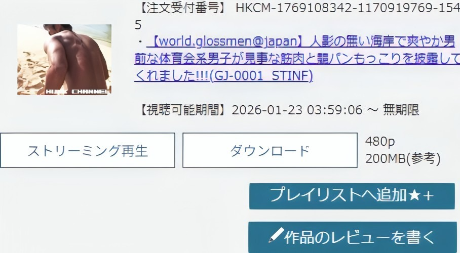 GLOSSMENが遂にMEGA HUNK CHANNEL独占配信で登場!!人影の無い海岸で爽やか男前な体育会系男子が見事な筋肉と競パンもっこりを披露!!さらにはシャワールームで勃起した亀頭を上から覗かせムッチリ尻に張り付いた競パンを降ろしていく!!シコる度に躍動する全身の筋肉と引き寄せられる胸筋が極エロです!!!